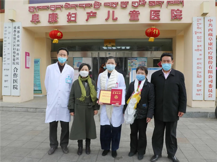2020年3月6日,西藏自治區(qū)婦女聯(lián)合會書記周世英、西藏自治區(qū)人力資源和社會保障廳巡視員劉莉來到了西藏阜康醫(yī)院婦產(chǎn)兒童院區(qū),為李君院長帶來了全區(qū)婦女界的最高榮譽——西藏自治區(qū)三八紅旗手。西藏阜康醫(yī)院總院長寧曉、西藏阜康醫(yī)療股份有限公司高級顧問歐珠羅布參加了表彰儀式。