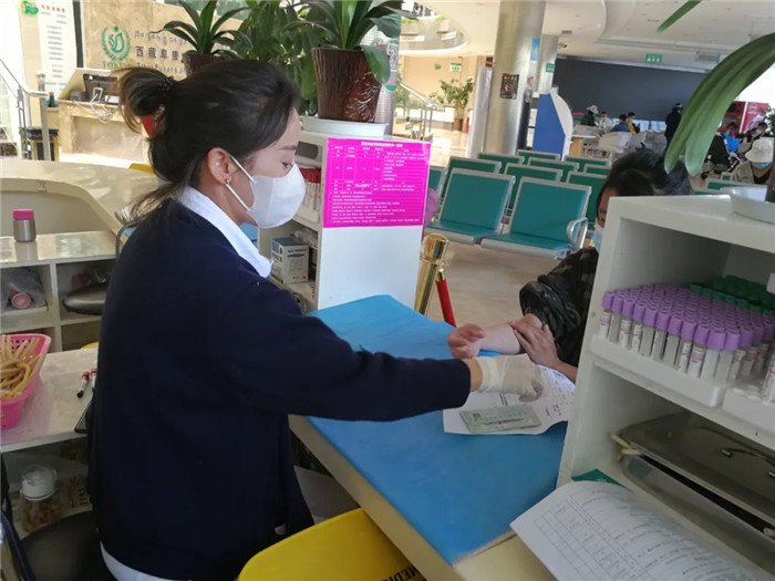 六月九日上午十點,西藏自治區(qū)血液中心的兩輛大巴開進了阜康體檢中心的大院。早已等候在此獻血的阜康員工,身影開始躍動。