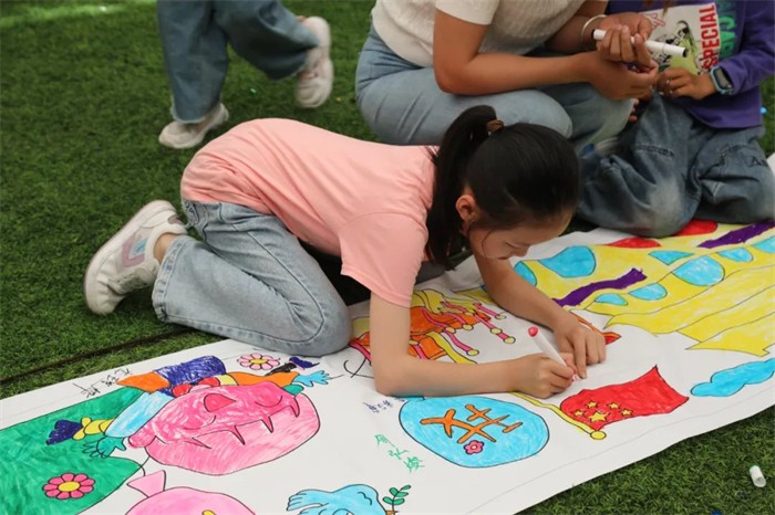 在祖國(guó)母親即將迎來75歲生日之際,我們以一幅長(zhǎng)達(dá)十米的壯麗涂鴉,向偉大的祖國(guó)母親致以最深的敬意與最熱烈的祝福。天安門城樓、五星紅旗、天壇公園……我們用手中的畫筆,將對(duì)祖國(guó)的熱愛與祝福融入每一筆、每一劃之中。
