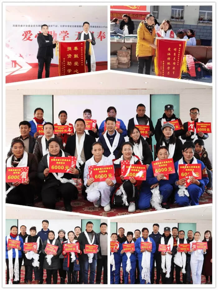 2018年2月11日,西藏阜康天使基金會(huì)和西藏阜康醫(yī)院黨委、工會(huì),在新春佳節(jié)來臨之際慰問困難群眾和員工,根據(jù)困難程度分別發(fā)放6000元、12000元、60000元不等的慰問金。同年11月,"西藏阜康天使基金會(huì)助學(xué)助醫(yī)捐贈(zèng)儀式”在阜康婦產(chǎn)兒童分院舉行,在本次捐贈(zèng)儀式上,西藏阜康天使基金會(huì)為西藏大學(xué)政法學(xué)院30名貧困學(xué)生,每人捐助4000元的生活補(bǔ)貼,總金額為120000元人民幣。通過這些幫扶活動(dòng)幫助了貧困員工、貧困群眾和學(xué)生走出困境、重塑生活,為他們生活注入了新的希望。