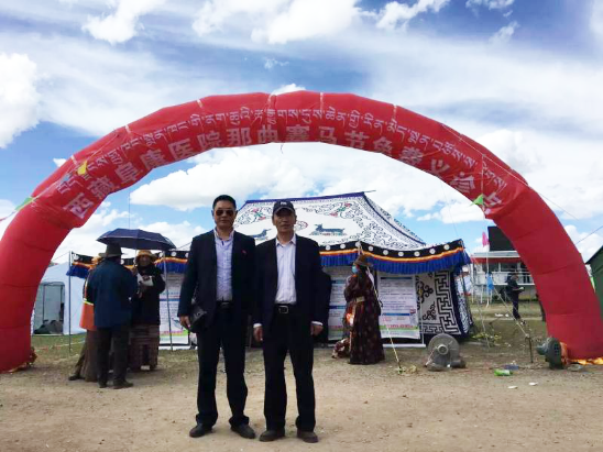 ▲黨委紀檢委員陳彬同志與嘎布院長義診點前的合影